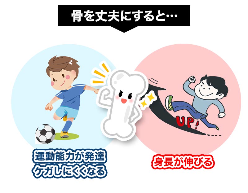 骨の成長に良いカルシウムやビタミン、ミネラルなどの複数の栄養素をバランス良く摂取することが大事なんです!