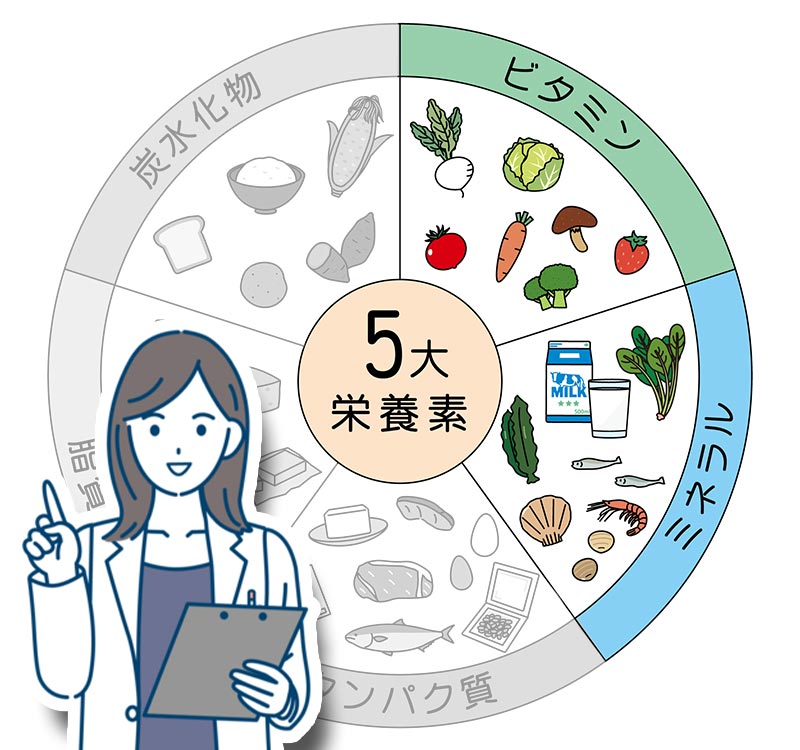 特にミネラルとビタミンは、骨を丈夫にするのに必要不可欠な栄養素。